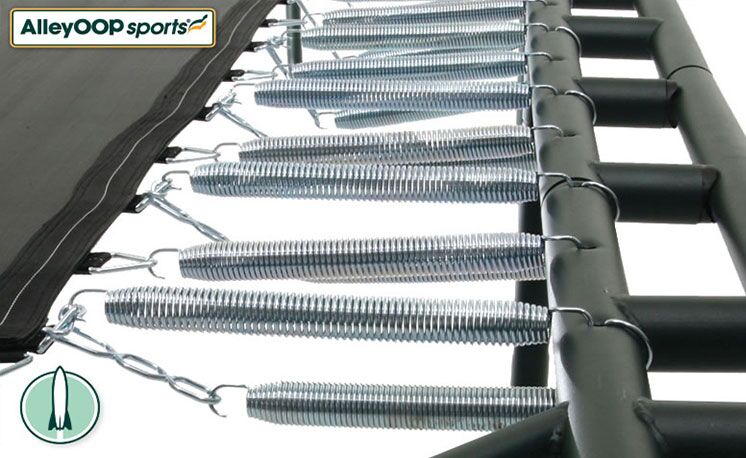We've also fine-tuned the assembly process to make it even more easy and trouble-free than before. Dont forget to purchase the 10x17 rectangular trampoline. The heart of the PowerBounce system is our patented TripleStage-DualSpring™ assembly. Each assembly consists of two High-Performance springs. The upper, Primary Spring locks the PowerArm™ into the V-ring, while the lower, PowerSpring™ attaches to one of the PowerArm’s. The PowerArm™ linkages work like levers as the PowerSprings stretch. The bottom setting provides the best combination of shock absorption and performance because it super-stages the springs. Direct price includes shipping within Continental U.S.