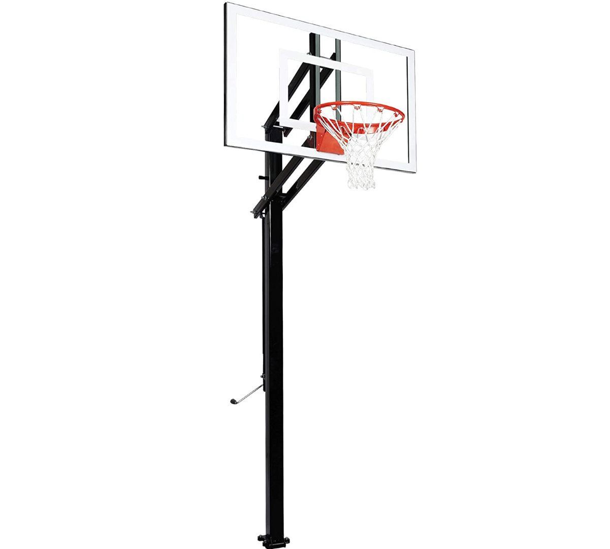 At the heart of the Goalsetter X448 is a 32″ x 48″ tempered glass backboard. This size strikes the perfect balance—large enough for serious play, yet compact enough to fit tight spaces. The clear glass provides a professional look while giving players that satisfying, responsive rebound found in gym-level systems.