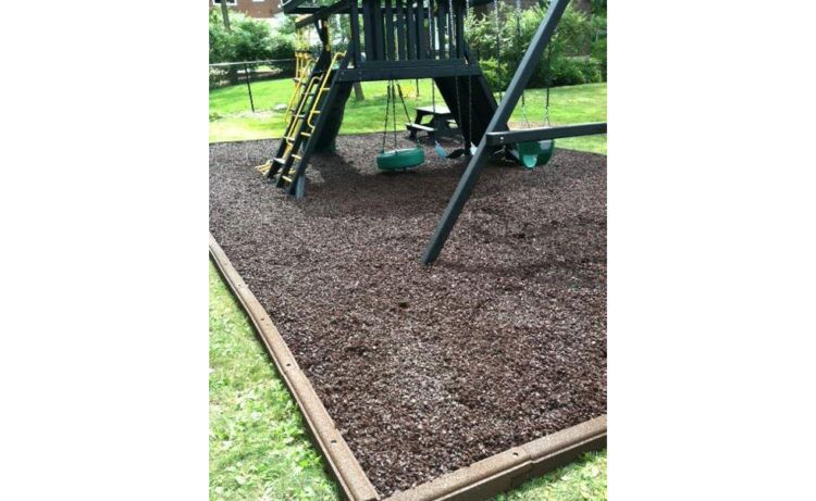 This looks like natural wood mulch, without all the negative characteristics of wood mulch. Many professional landscapers buy this mulch instead of wood mulch. Using this rubber material not only makes the play area safer, but it also gives it a clean professional look.