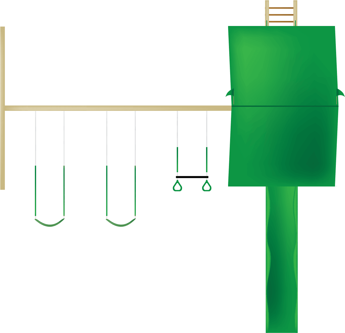 This set includes the Easy Ride Eco Beam with three swing positions, featuring two sling swings and a trapeze with rings. The soft-grip chains are gentle on small hands and provide a secure, smooth swinging experience.