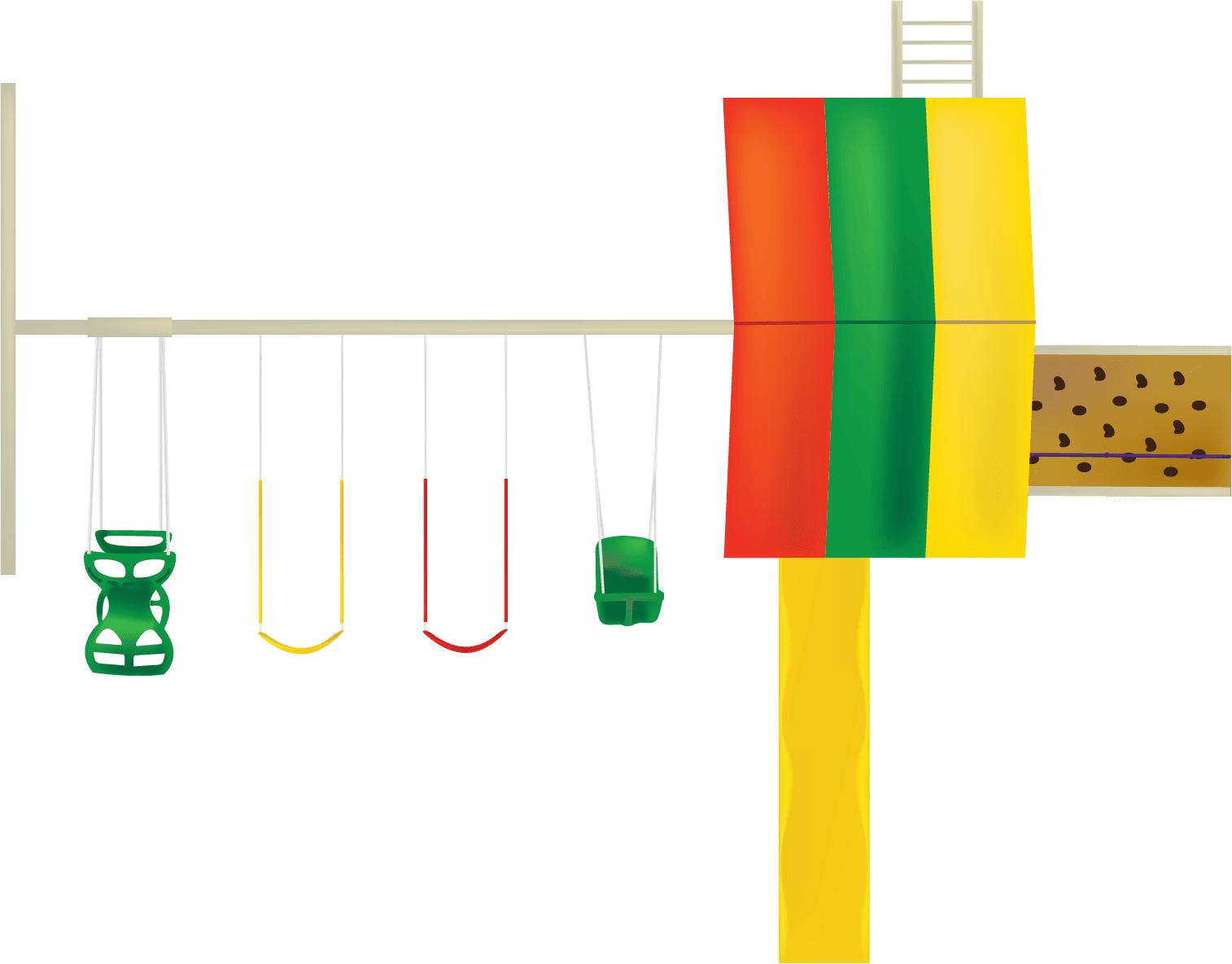 This model includes a 4-position Easy Ride Eco Beam, holding two sling swings, a horse glider, and a baby swing. Soft-grip chains ensure little hands stay comfortable while swinging high or hanging upside down.