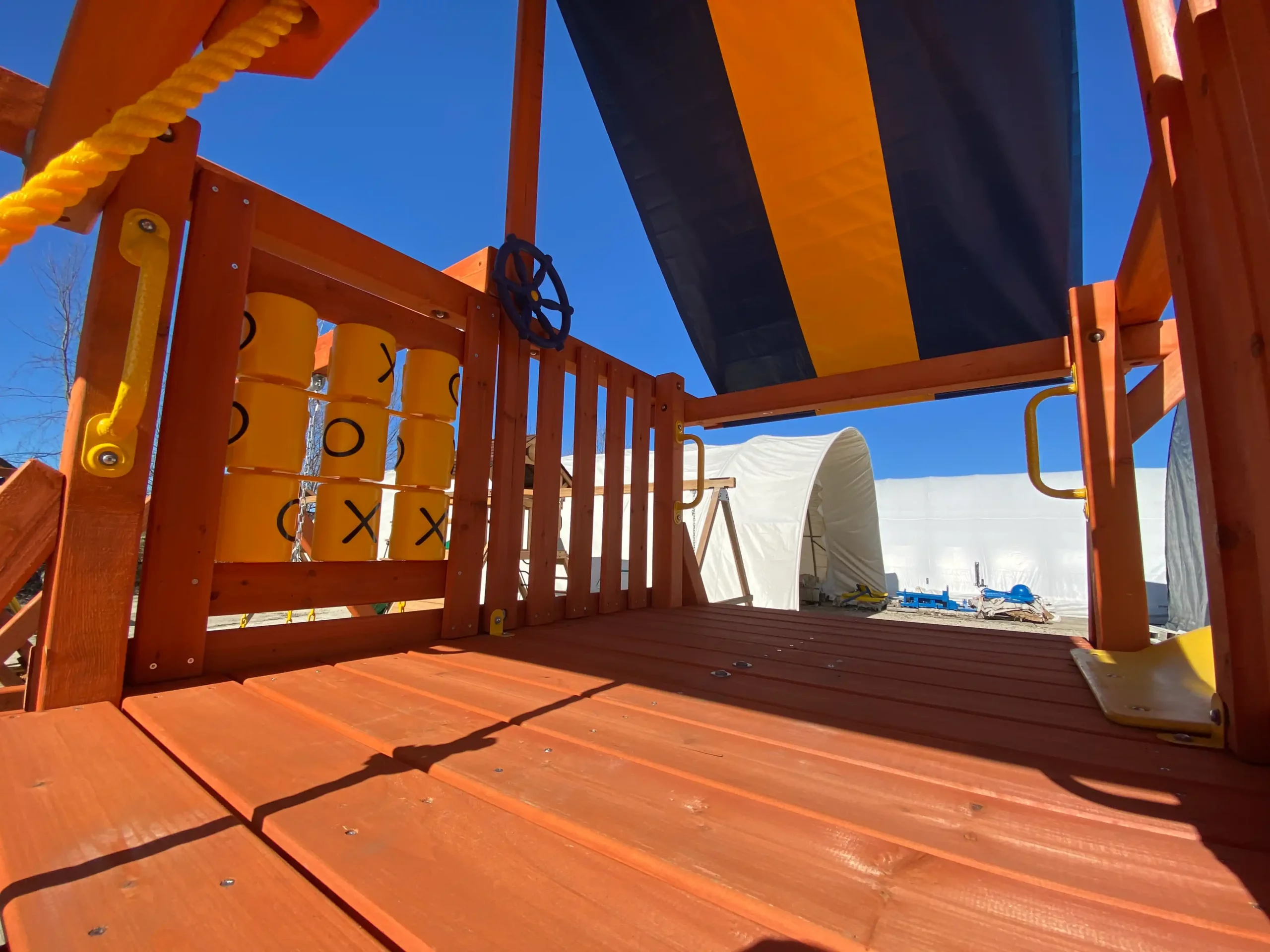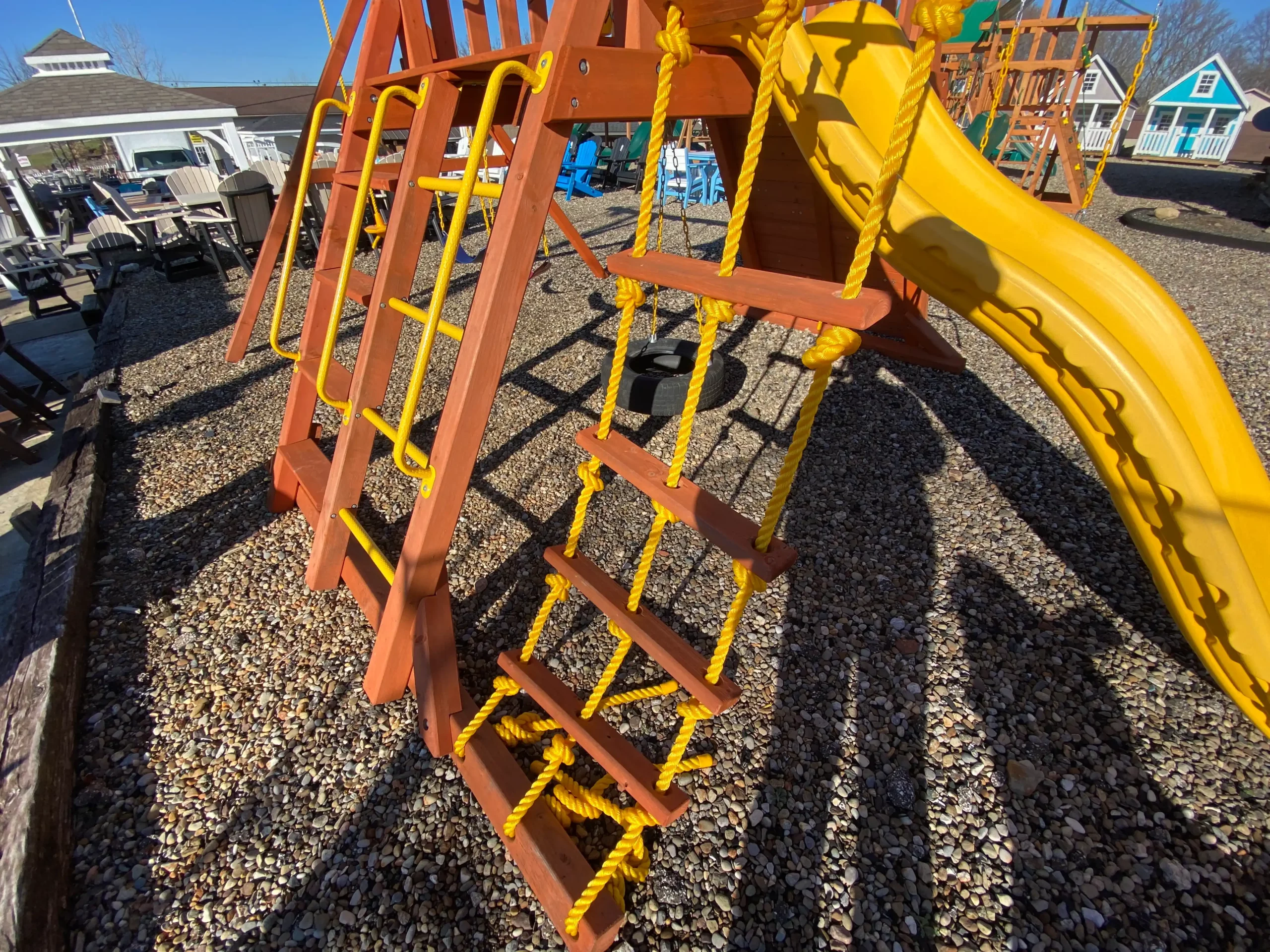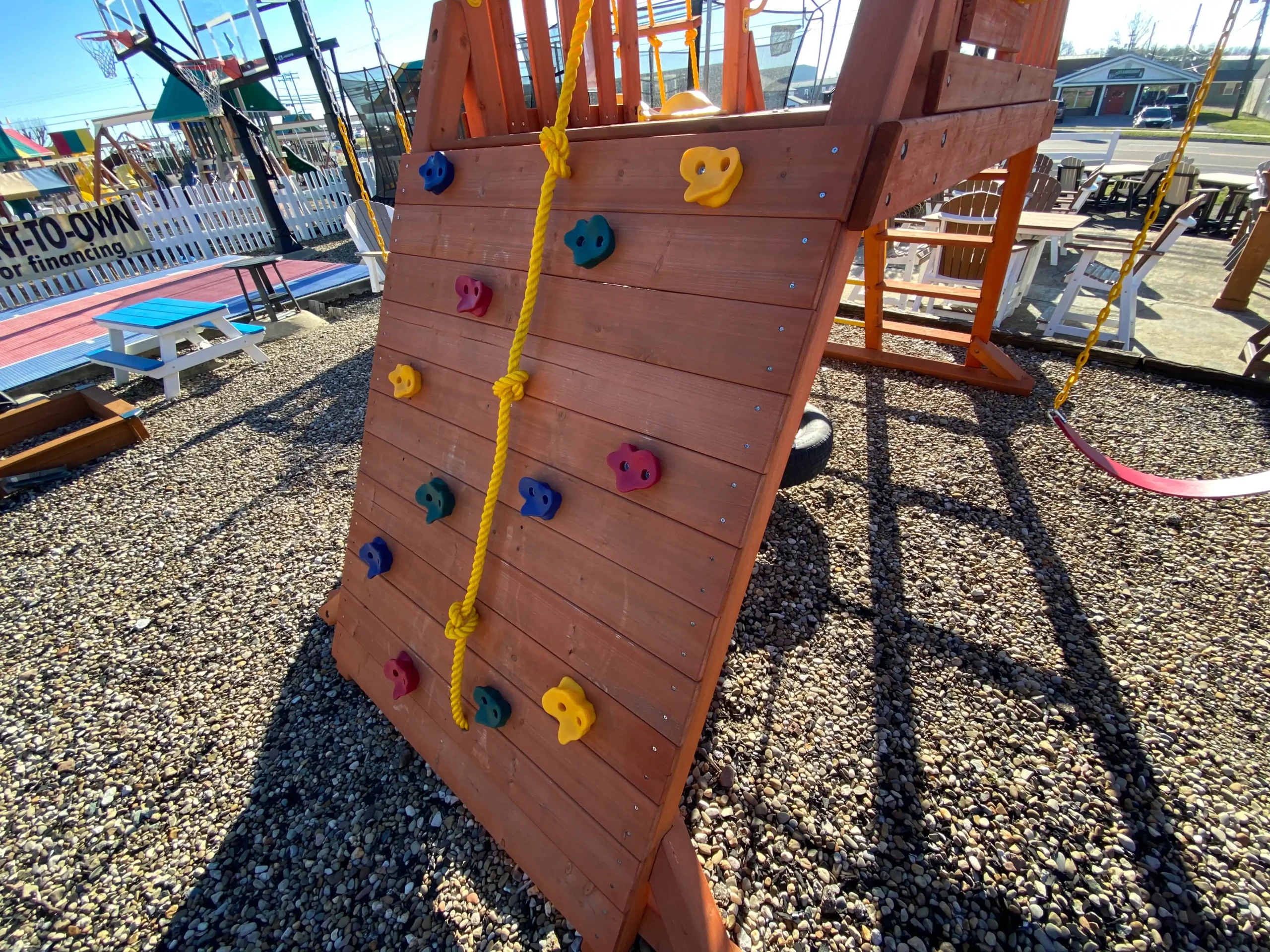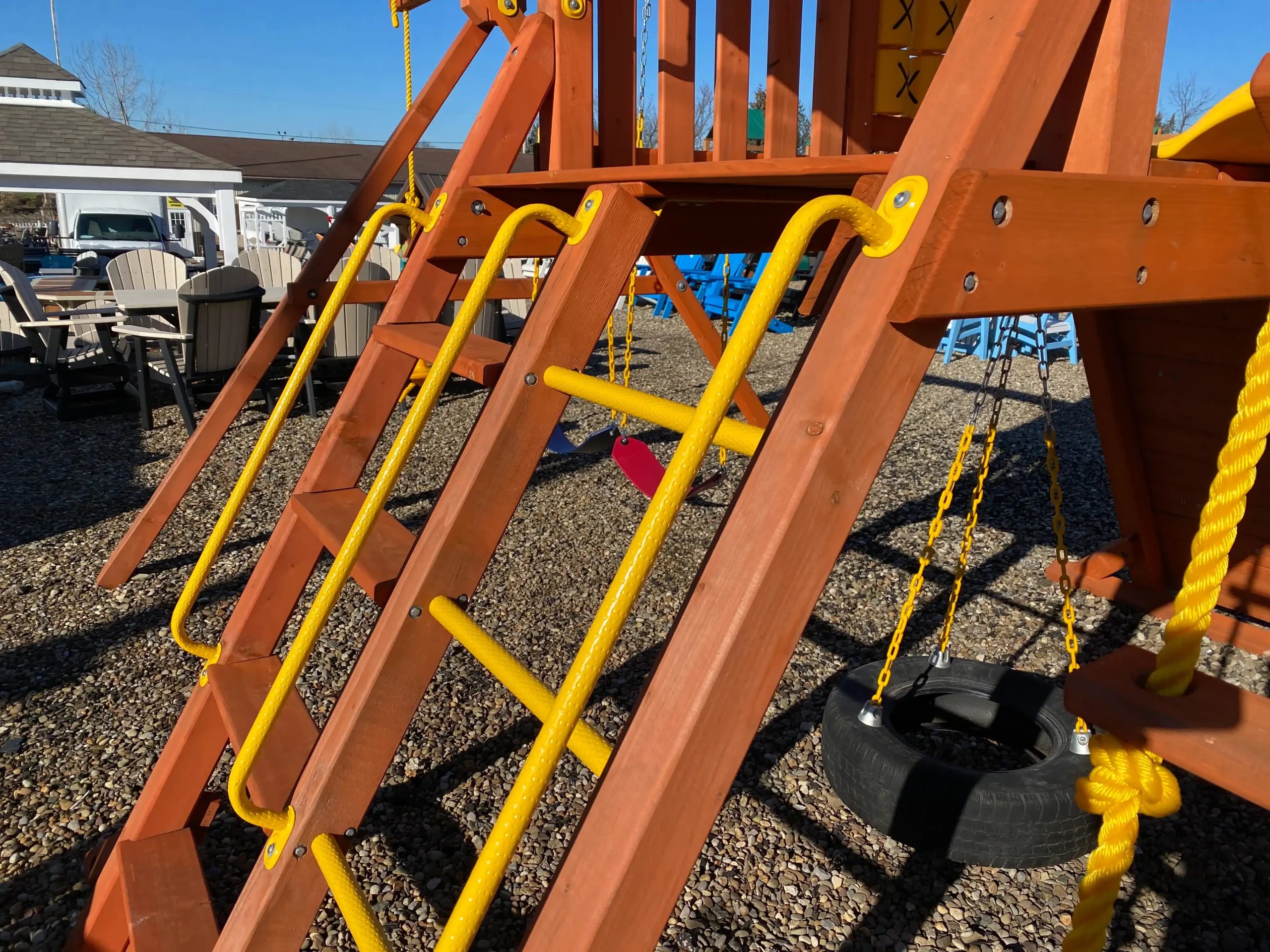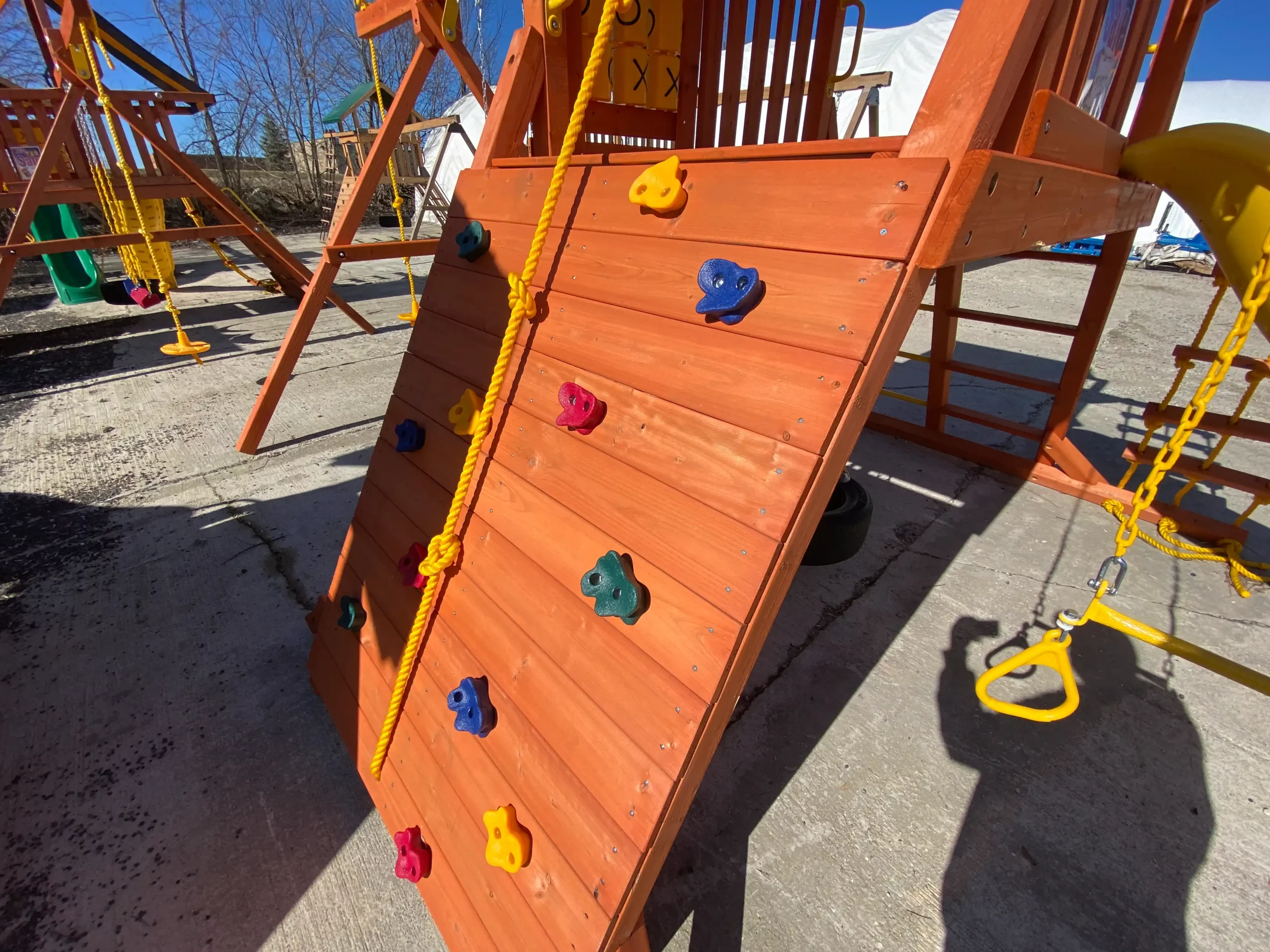 The 5.0 Mystic Mountain swing set is constructed from high-quality wood, ensuring durability and longevity. With its sturdy construction and premium materials, this swing set is built to withstand years of active play and outdoor use, providing families with peace of mind.