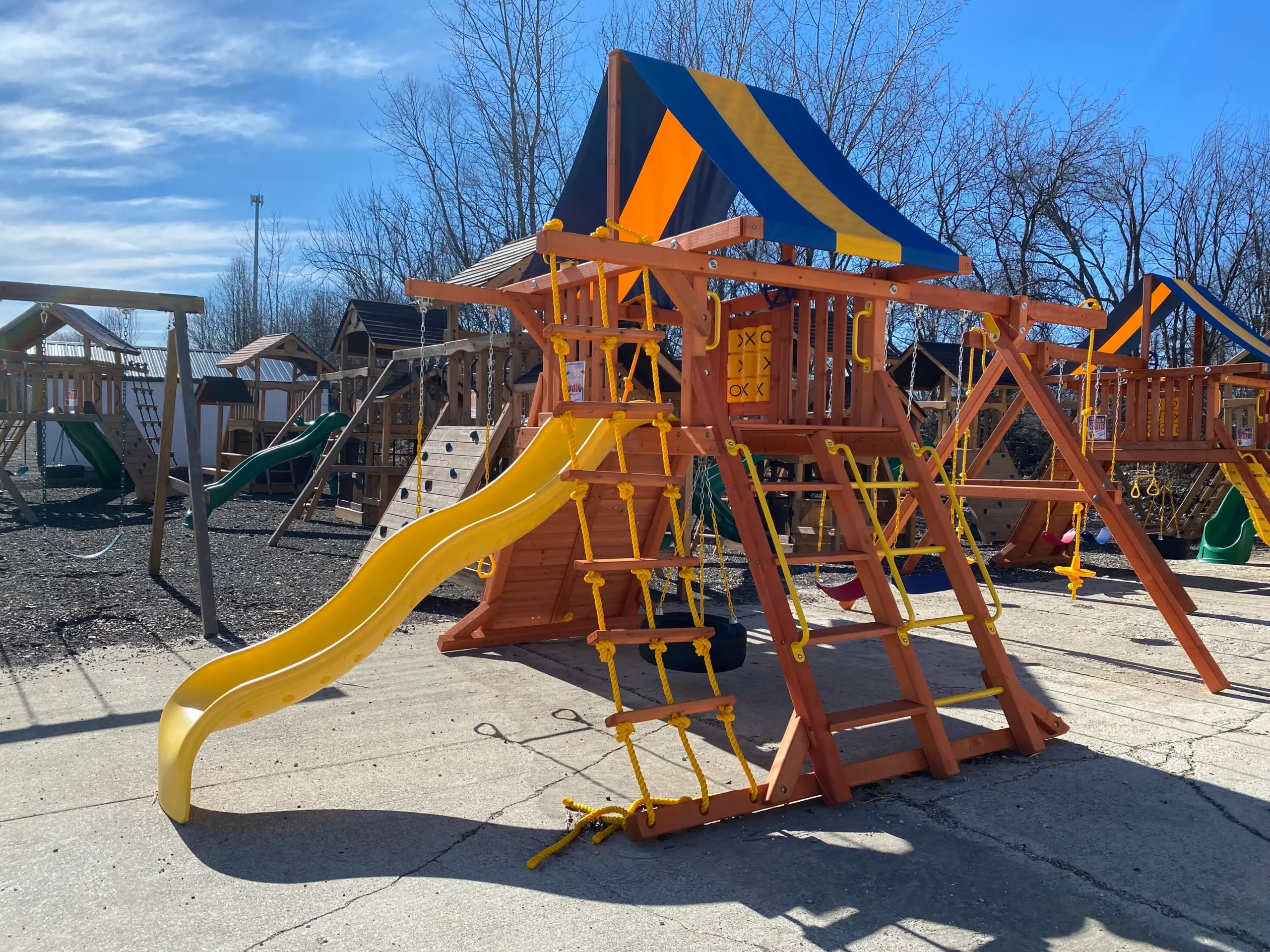 This impressive swing sets wooden is available for sale at our many Kids World Play Systems locations, making it convenient for families to find the perfect outdoor play equipment for their backyard. With our commitment to quality, safety, and customer satisfaction, Kids World Play Systems is your trusted partner for all your outdoor play needs.